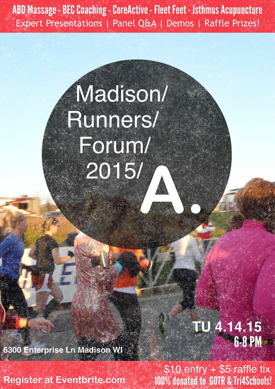 THANK YOU to all who attended the Madison Runners Forum in April! 100% of the over $325 raised during the event was donated to Tri4Schools & Girls on the Run of Dane County! Special thanks to the following individuals and businesses who donated time and resources in order to make the evening possible - great work team!