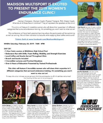 "Women's Day in Endurance Sports" ~ a clinic hosted by Madison Multisport